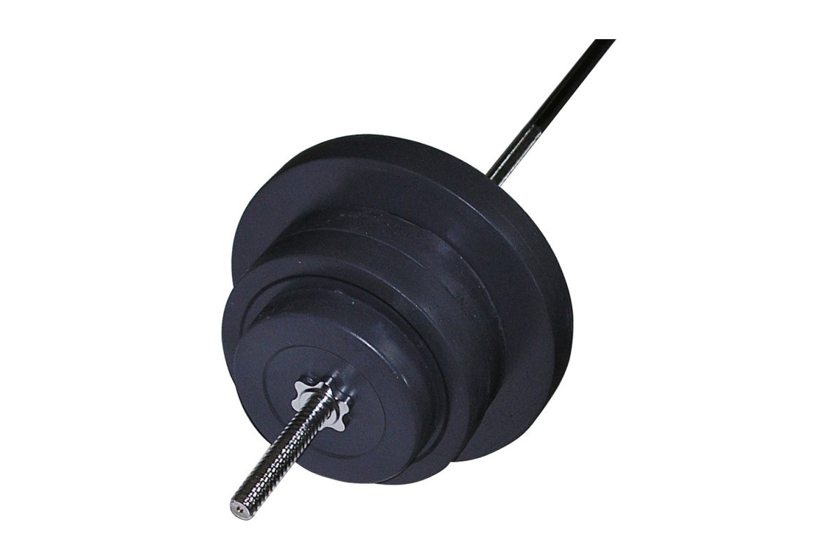 Комплектация: гриф прямой стальной хромированный 180 см, диски 10 кг - 2 шт, 5 кг - 4 шт, 2.5 кг - 2 шт