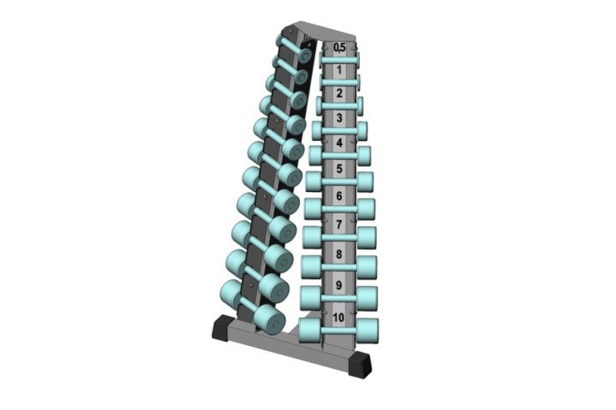 Для хранения гантелей необходима стойка InterAtletikGym ST410.1, которая значительно экономит местов помещении. Спортивное оборудование имеет вертикальную конструкцию, которая имеет специальные гнезда для размещения 11 пар гантелей.Спортивное оборудование изготовлено из устойчивой к царапанью высокосортной стали, которая гарантирует сохранение первоначального внешнего вида на протяжении долгого времени. Безопасность как во время тренировки, так и после обеспечивают пластины каждой гантели, которые надежно сидят в гнездах. Конструкия не занимает много места и поэтому подходит для любого помещения.